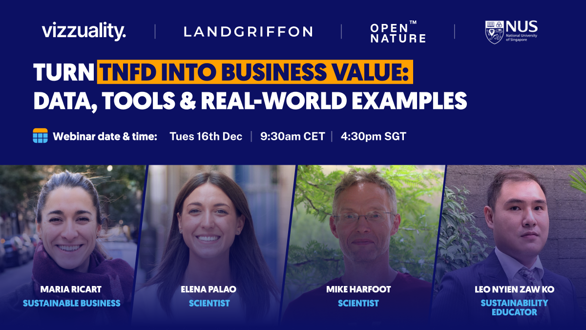 Elena Palao Martinez, Michael Harfoot, and moderated by Maria Ricart. Vizzuality — LandGriffon & Open Nature leads