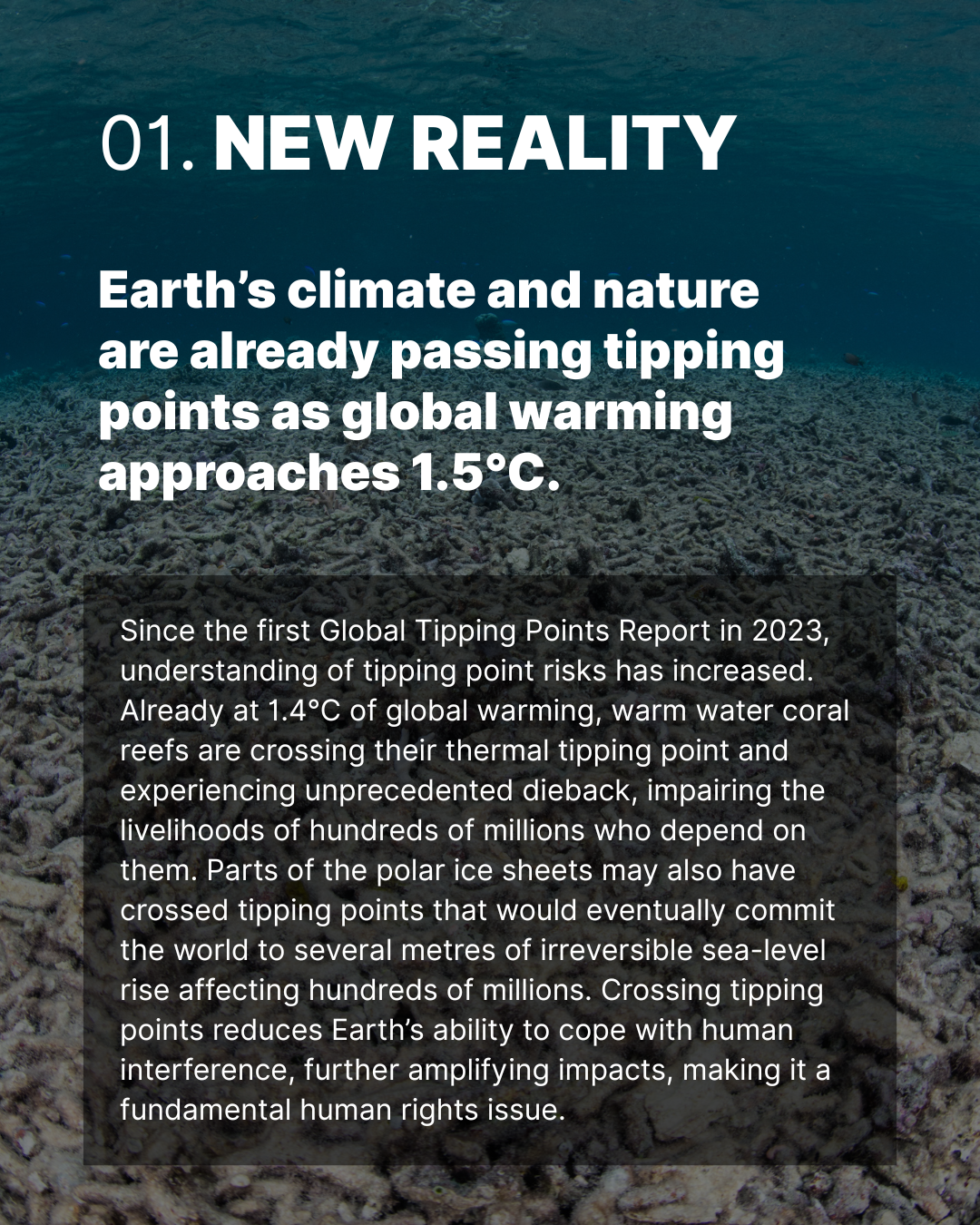 These are taken directly from the report and haven’t been rewritten. Report by Global Tipping Points: https://global-tipping-points.org/
